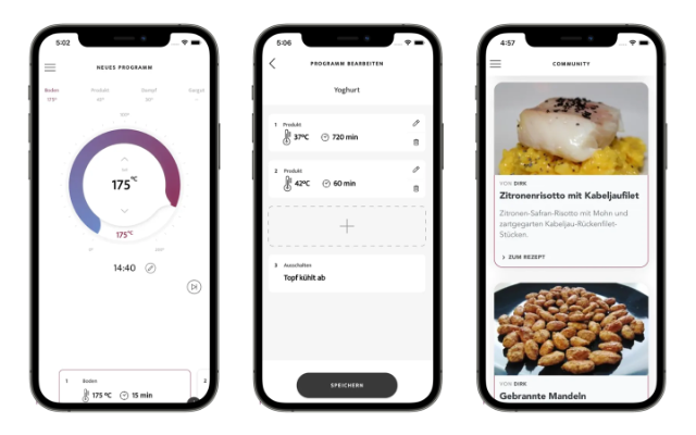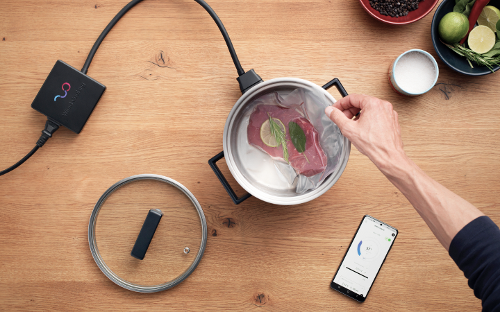 Melting chocolate precisely at 42 degrees, cooking sous-vide beef tenderloin at 57 degrees, or frying fries at 160 degrees: Wired Cooking has developed a cooking pot that prepares (almost) all dishes perfectly. The smart cooker operates without a stove and is controlled via an app developed by ti&m.