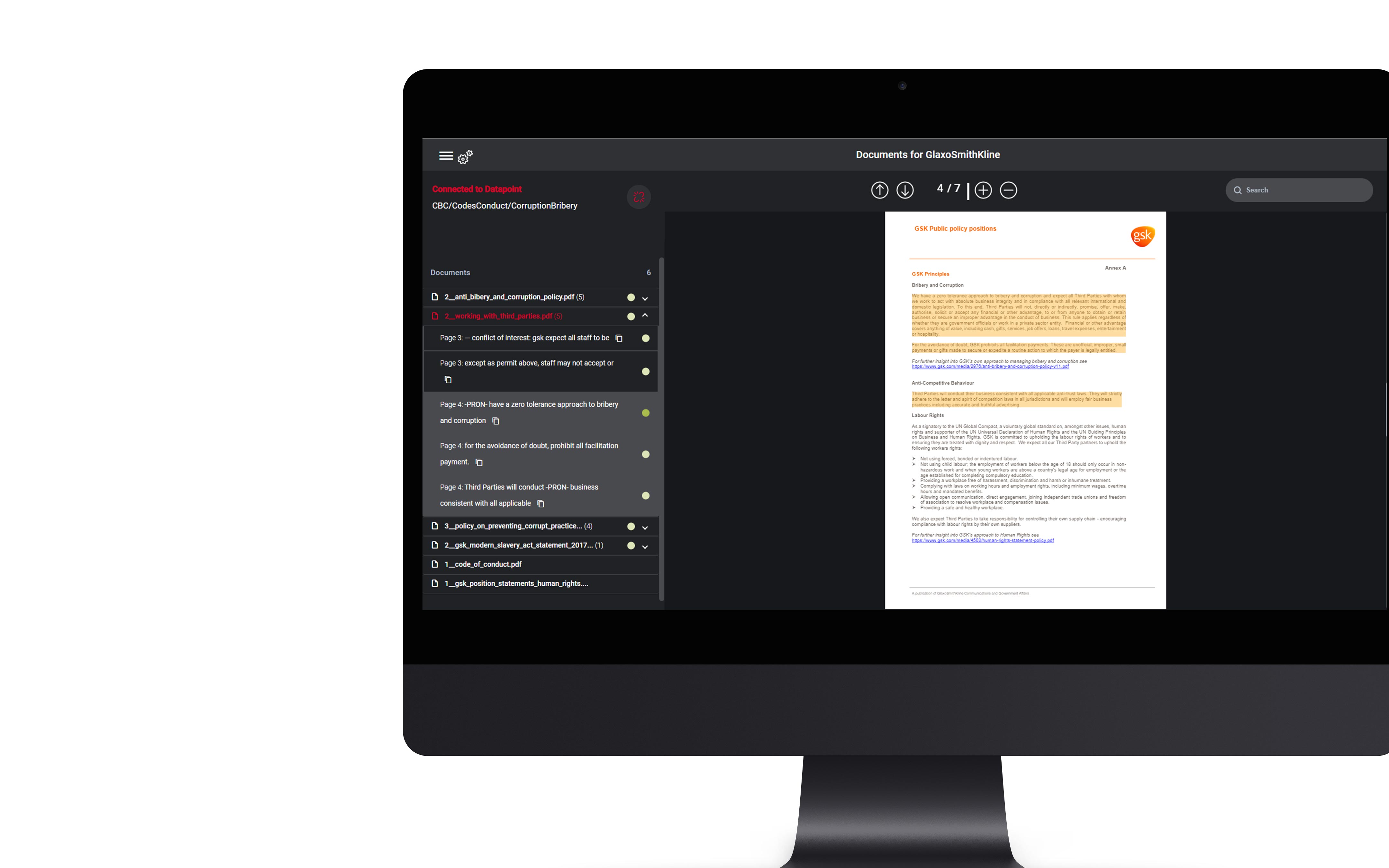 solution for visualizing documents, incl. displaying the relevant text passages for different categories.