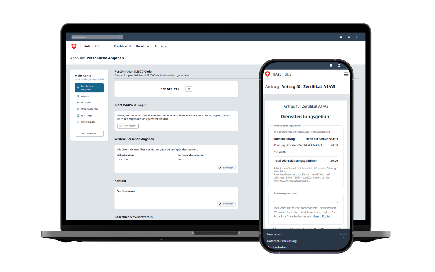 The FOCA has fully digitized these processes with the dLIS digital licensing system: From registration, training, and examination to payment and the issue of certificates, every step is carried out without any media discontinuity. The first part went live at the end of 2024 and enabled drone pilots to apply for certificates online. Since then, new functions have been continuously added, such as payment options or the automated booking of appointments for theory examinations. The service has been gradually expanded to include further processes for additional target groups.